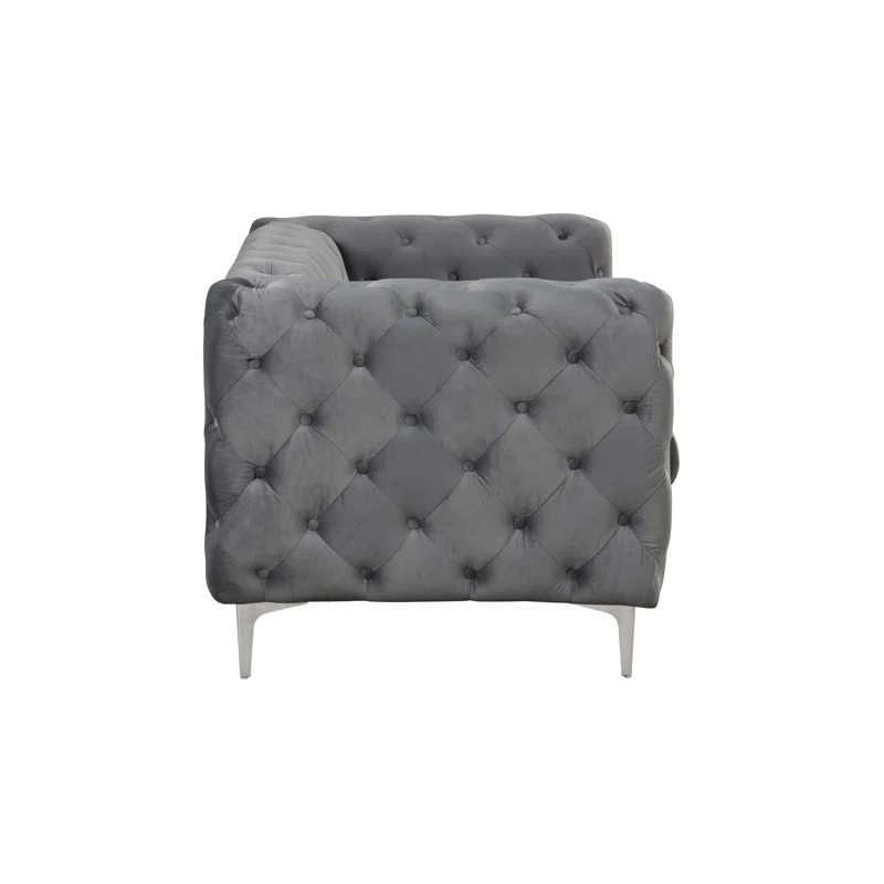 مغطى بقماش مخملي فاخر، ويزيّن الطقم تطريز بأزرار ماسية على كامل الظهر والأذرع المربعة لإضفاء لمسة من سحر فن الآرت ديكو (Art Deco). كما يحتوي الطقم على حشوات إسفنجية ونوابض مرنة لتوفير الدعم المثالي أثناء مشاهدة الأفلام أو القراءة.