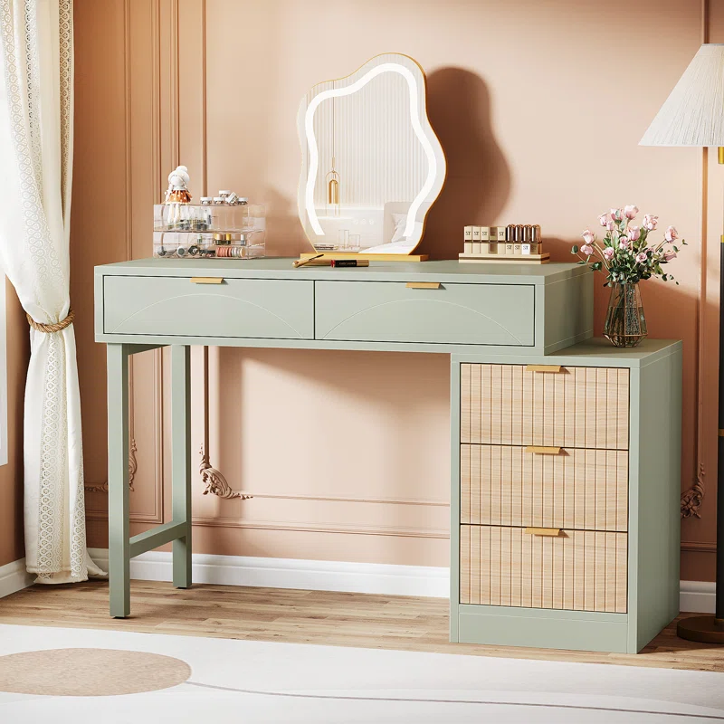 تسريحة أنيقة متعددة الاستخدامات مزودة بخمسة أدراج لتخزين أدوات التجميل والإكسسوارات، تضيف لمسة من الأناقة والعملية لأي مساحة.
