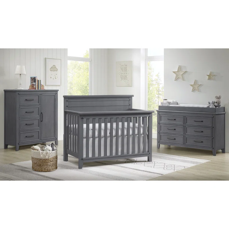 مجموعة حضانة متكاملة: يمكن تنسيق السرير مع قطع أثاث أخرى من مجموعة مثل الخزانة، الطاولة الجانبية، وصينية التغيير.