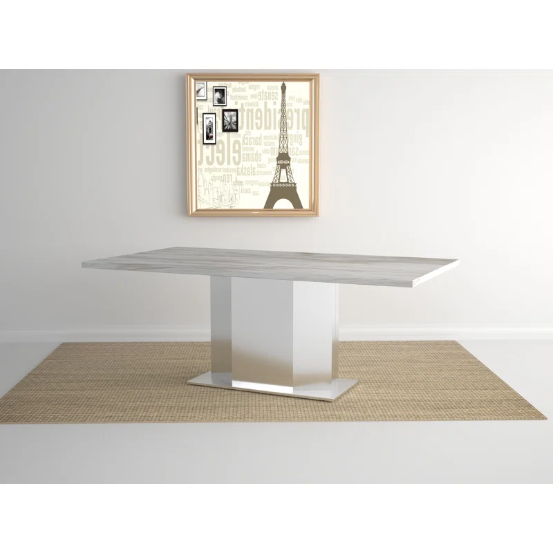 طاولة طعام فاخرة بسطح من الرخام الطبيعي وقاعدة أنيقة من الستانلس ستيل، تضيف لمسة فخمة وعصرية إلى أي غرفة طعام.