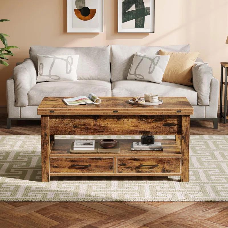 طاولة قهوة متعددة الوظائف: يتيح لك السطح القابل للرفع تعديل ارتفاع الطاولة بسهولة لتلبية احتياجات الأنشطة مثل استخدام الكمبيوتر المحمول، الكتابة، أو تناول الطعام أثناء الجلوس على الأريكة.