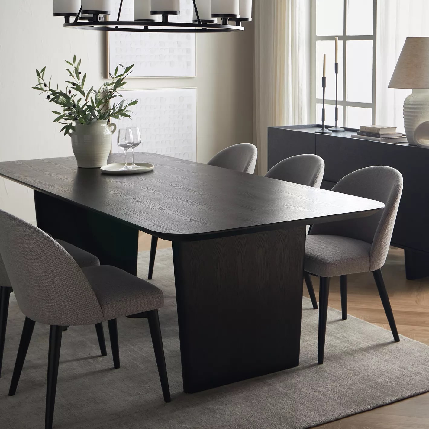 أضف لمسة من الرقي إلى غرفة تناول الطعام الخاصة بك مع هذا الطقم المكوّن من طاولة مستطيلة كلاسيكية وستة كراسي مريحة. تتميز الطاولة بسطح من القشرة التي تضيف إحساسًا بالدفء وتنسجم مع مختلف أنماط الديكور. صُممت المقاعد بقماش متين يوفر راحة فائقة أثناء الجلوس لفترات طويلة، مما يجعلها مثالية للتجمعات العائلية أو دعوات الضيافة الأنيقة. يتمتع الطقم بتصميم متوازن يجمع بين المتانة والجاذبية، ويُعد خيارًا فاخرًا لكل منزل يهتم بالتفاصيل.