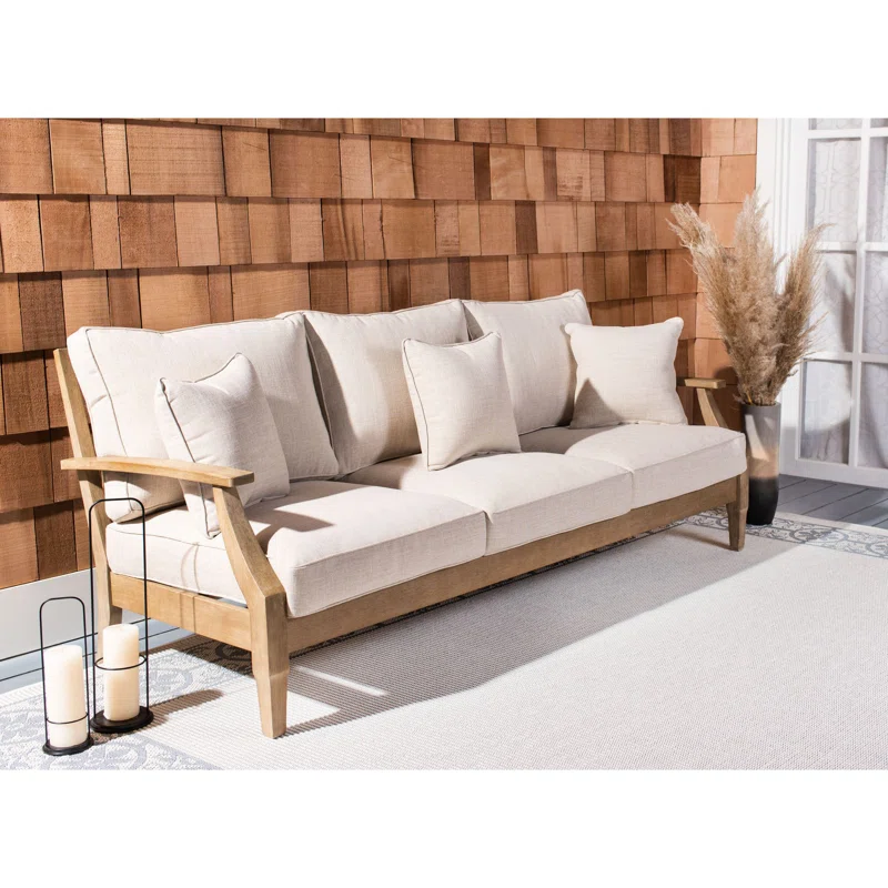 تُعد هذه الأريكة الخارجية بعرض 210.82 سم خيارًا مثاليًا ومريحًا لثلاثة أشخاص للاسترخاء في الهواء الطلق، سواء كنت تستضيف حفلة حديقة أو تستمتع بأمسية هادئة. مصنوعة من خشب الأوكالبتوس الصلب، وتتميز بتدرجات طبيعية في لون الخشب تمنح شرفتك أو فناءك لمسة ريفية أنيقة. تأتي الأريكة مع ست وسائد قابلة للإزالة وثلاث وسائد زينة، جميعها مغلفة بقماش بوليستر عالي الأداء بأغطية قابلة للغسل في الغسالة لسهولة التنظيف. الوسائد محشوة بمزيج من الفوم والألياف الصناعية لتوفير أقصى درجات الراحة.