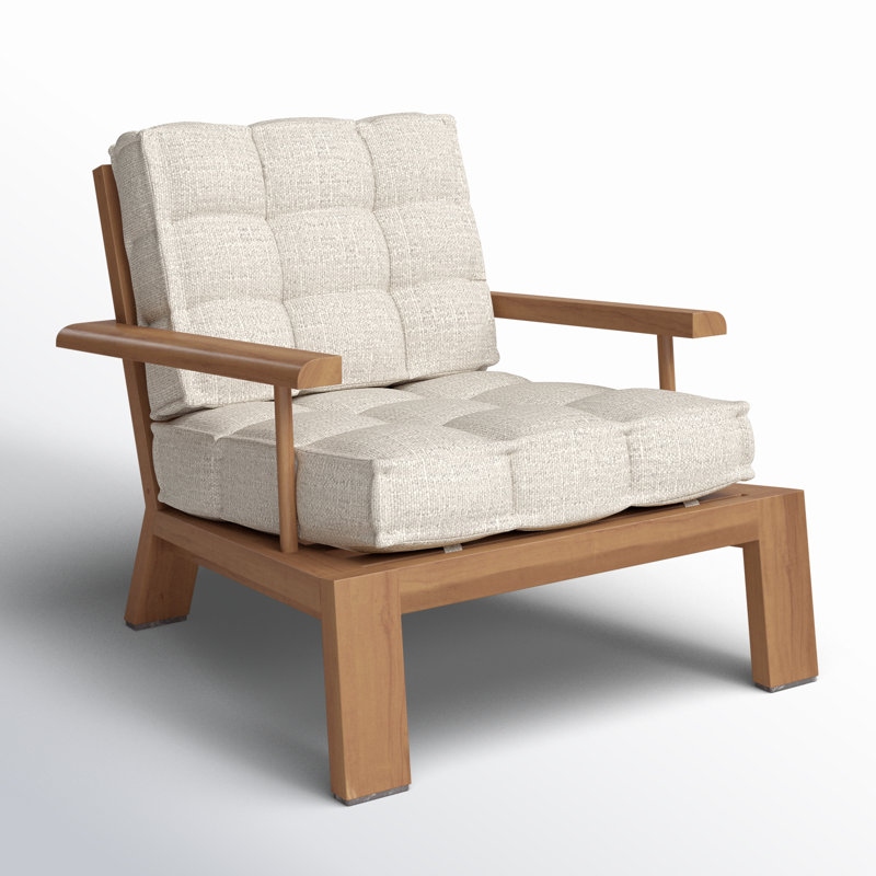 استمتع بالراحة الناعمة في المساحات الخارجية مع هذا الكرسي واسع الإطار المصنوع من خشب الساج المعتمد من FSC. يتميز بأرجل على شكل مجداف، ومقعد ومسند ظهر بتصميم مفرغ، مع وسائد رملية اللون منجدة بسخاء لتوفير تجربة جلوس مريحة. يُفضل تخزينه أو تغطيته في الداخل أثناء الطقس السيئ أو عند عدم الاستخدام.