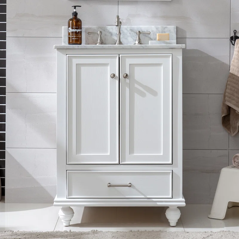 توفّر وحدة الحوض المنفصلة هذه مكانًا مناسبًا في حمام الضيوف لتجهّز نفسك في الصباح. تأتي بقاعدة مصنوعة من الخشب الصلب والمصنّع، مثبتة على أرجل مدوّرة تضيف لمسة تقليدية، كما أن لونها المحايد ينسجم بسهولة مع مختلف الأساليب ولوحات الألوان. تحتوي على بابين ودرج سفلي مزوّدين بتصميم لوحات مؤطرة، مما يوفر مساحة كبيرة لتخزين المناشف وأدوات النظافة وغيرها. يبلغ عرض سطح الرخام المستطيل 61 سم، ويشمل لوحًا خلفيًا وحوضًا بيضاويًا مدمجًا من السيراميك (الصنبور يُباع بشكل منفصل).