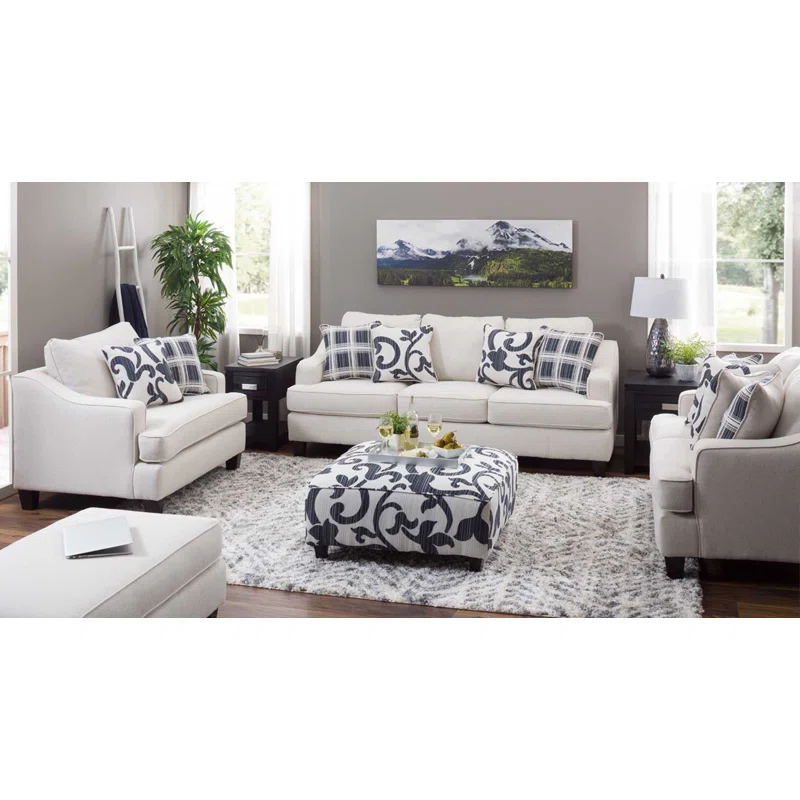 مصممة للراحة اليومية، تحتوي الأريكة على ثلاث وسائد قابلة للعكس للمقعد ووسائد ظهر سميكة قابلة للعكس على شكل حافة سكين، توفر دعمًا ممتازًا ومكانًا ناعمًا وفاخرًا للجلوس في نهاية اليوم. تعكس الكنبة الصغيرة تصميم الأريكة مع وسادتين للمقعد، بينما يوفر الكرسي ونصف مع عثمانية للقدم مطابقة زاوية شخصية دافئة ومريحة. في الوسط، تكمل العثمانية متعددة الاستخدامات Sonata Navy بنقشة زهرية الترتيب الجذاب.