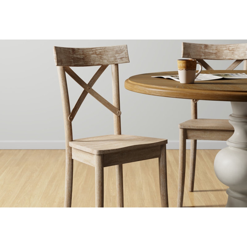 تتضمن هذه المجموعة كرسيين بتصميم X-back يضيفان لمسة من السحر الريفي إلى غرفة الطعام الخاصة بك. تم تصميم الكراسي بتشطيب طبيعي يناسب مجموعة متنوعة من الطاولات. يوفر التصميم العكسي للظهر مظهرًا أنيقًا وخالدًا، مما يجعلها مثالية لأي مكان تقليدي أو بأسلوب المزرعة.